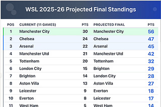 WSL 2025-26 Mid-Season Review: League-wide Trends and End of Season Projections (Part 3)