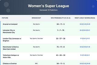 2025–26 WSL Gameweek 10 Preview & Predictions