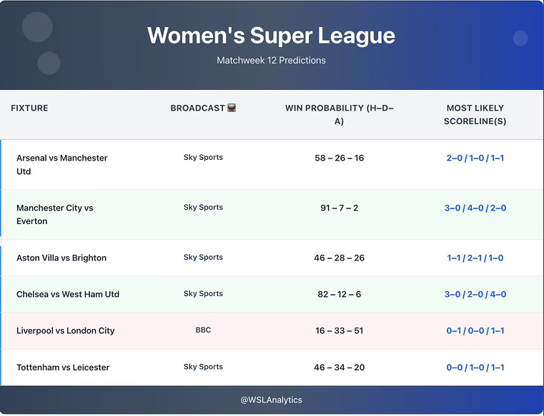 2025–26 WSL Matchweek 12 Preview & Predictions
