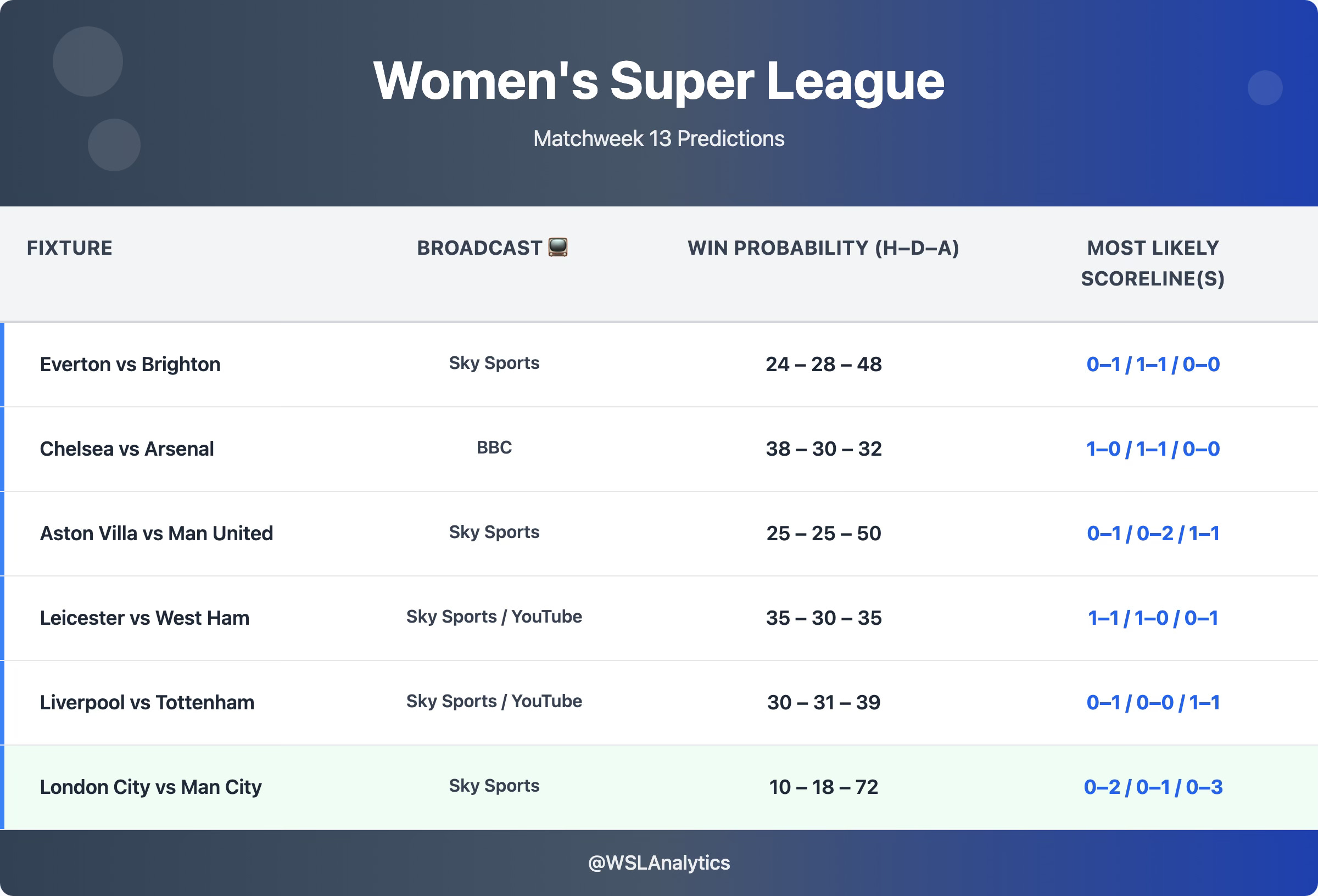 2025–26 WSL Matchweek 13 Preview & Predictions