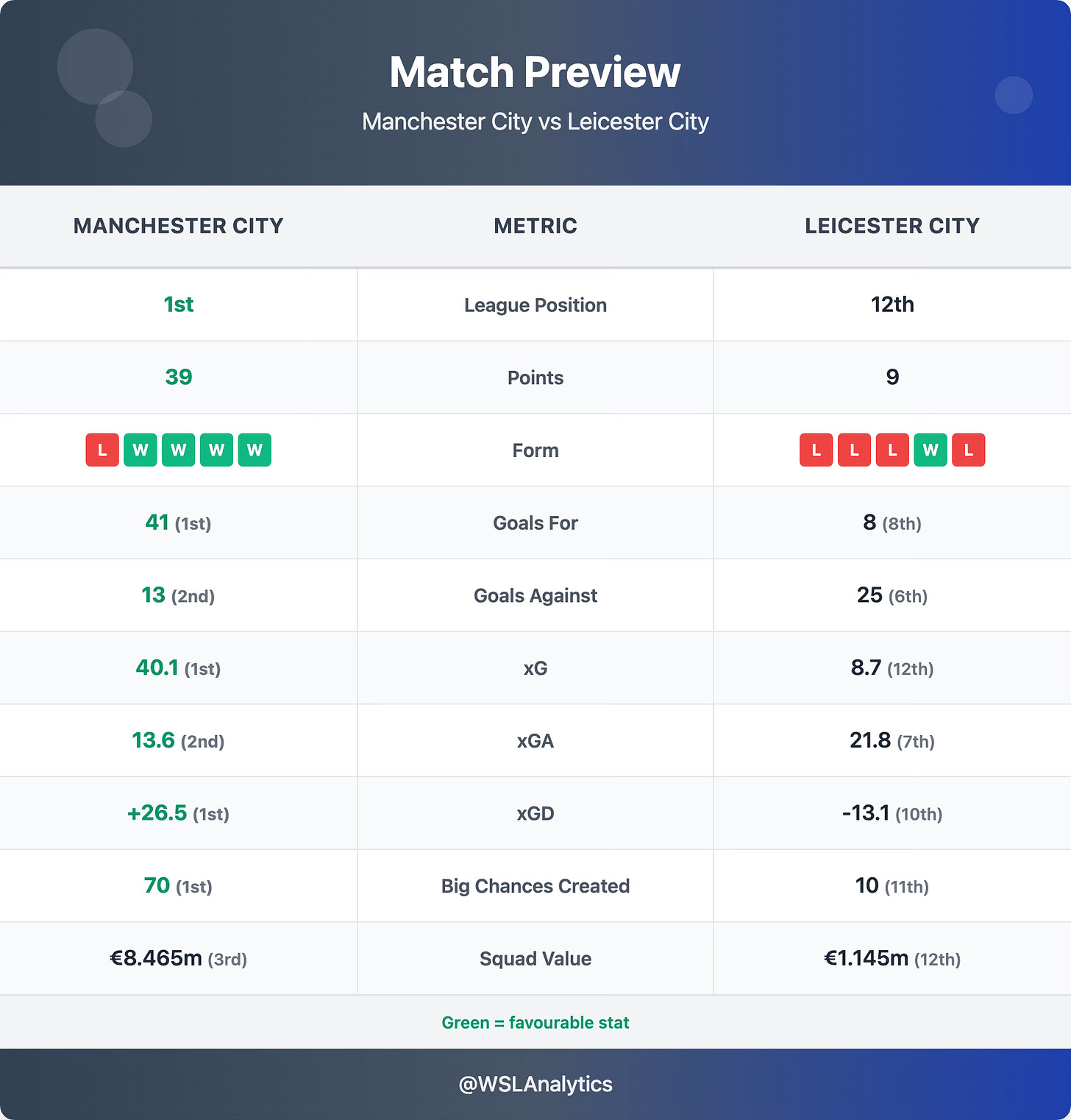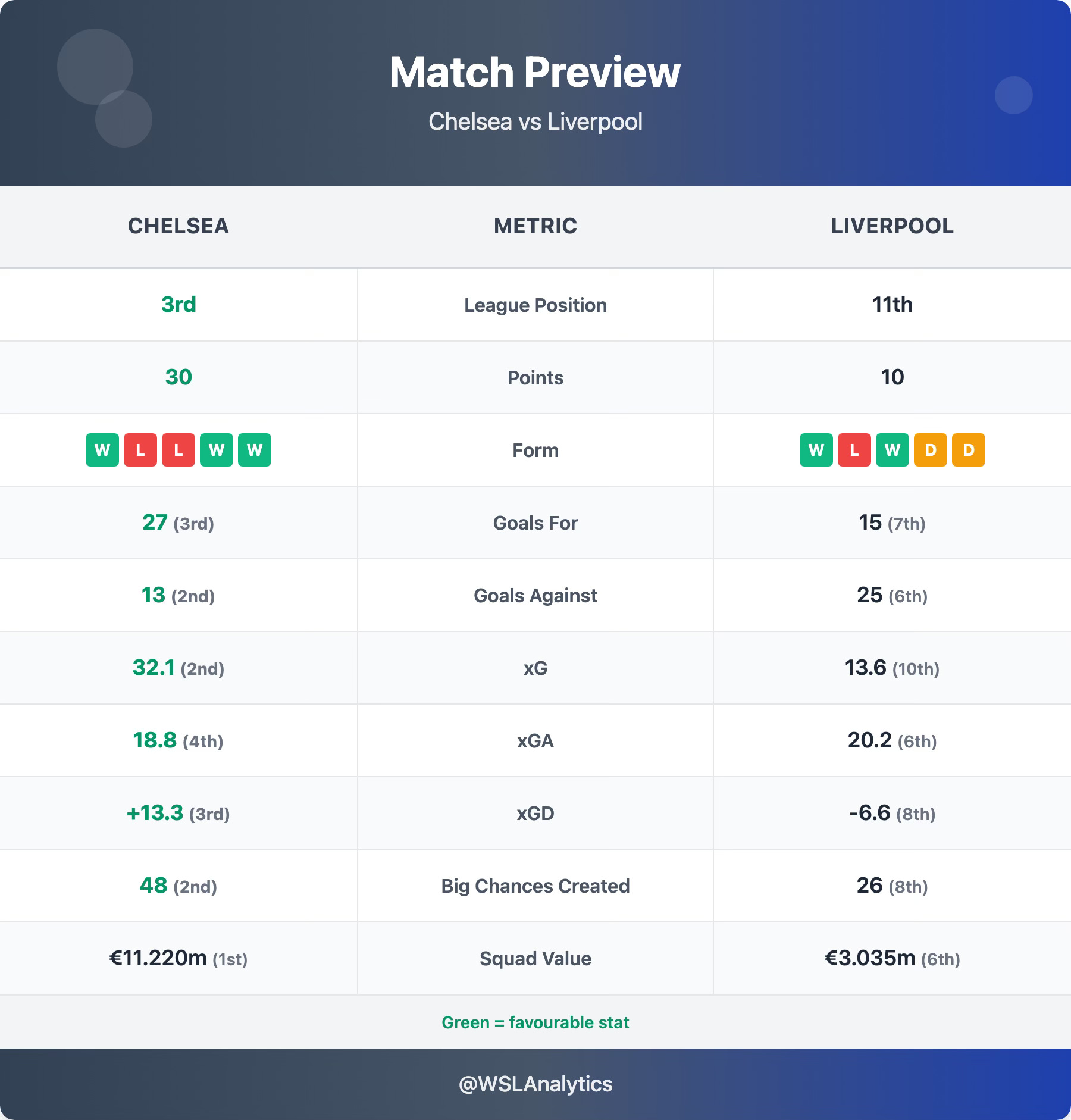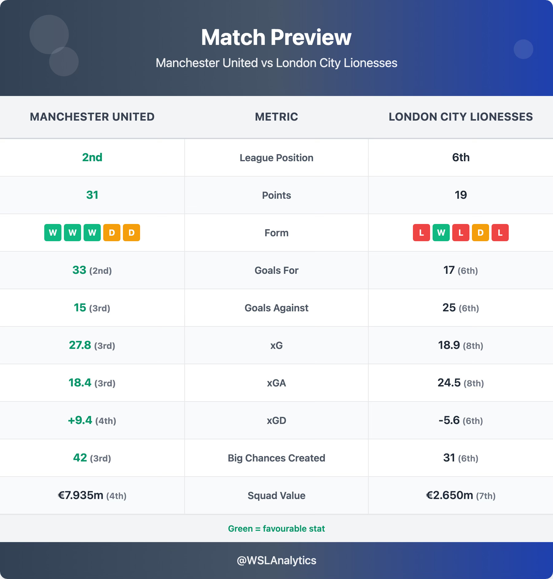 Predictions: WSLAnalytics model | Squad values: Soccerdonna | Match stats: FotMob