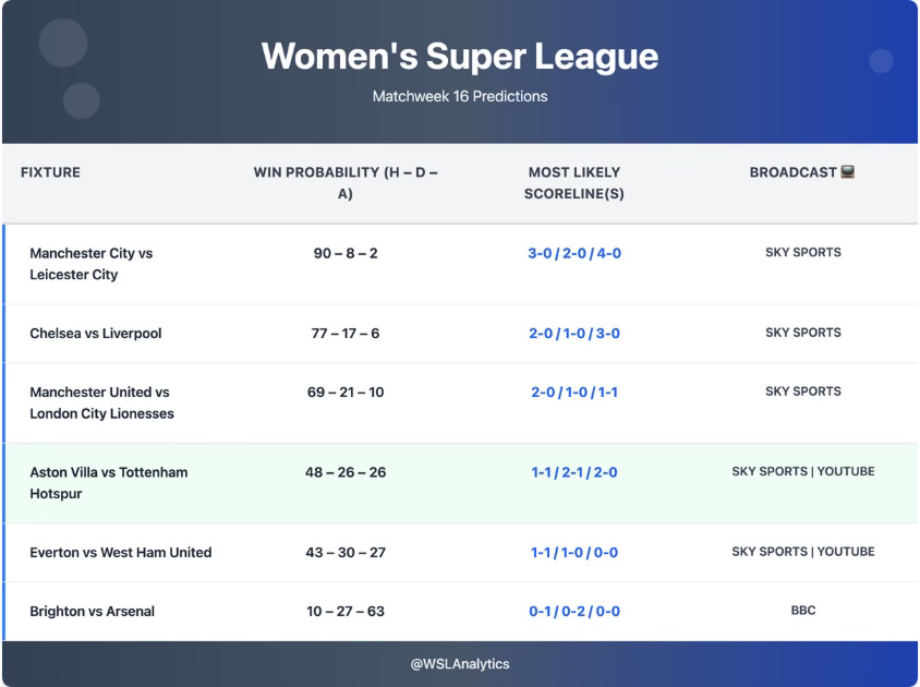 2025–26 WSL Matchweek 16 Preview & Predictions