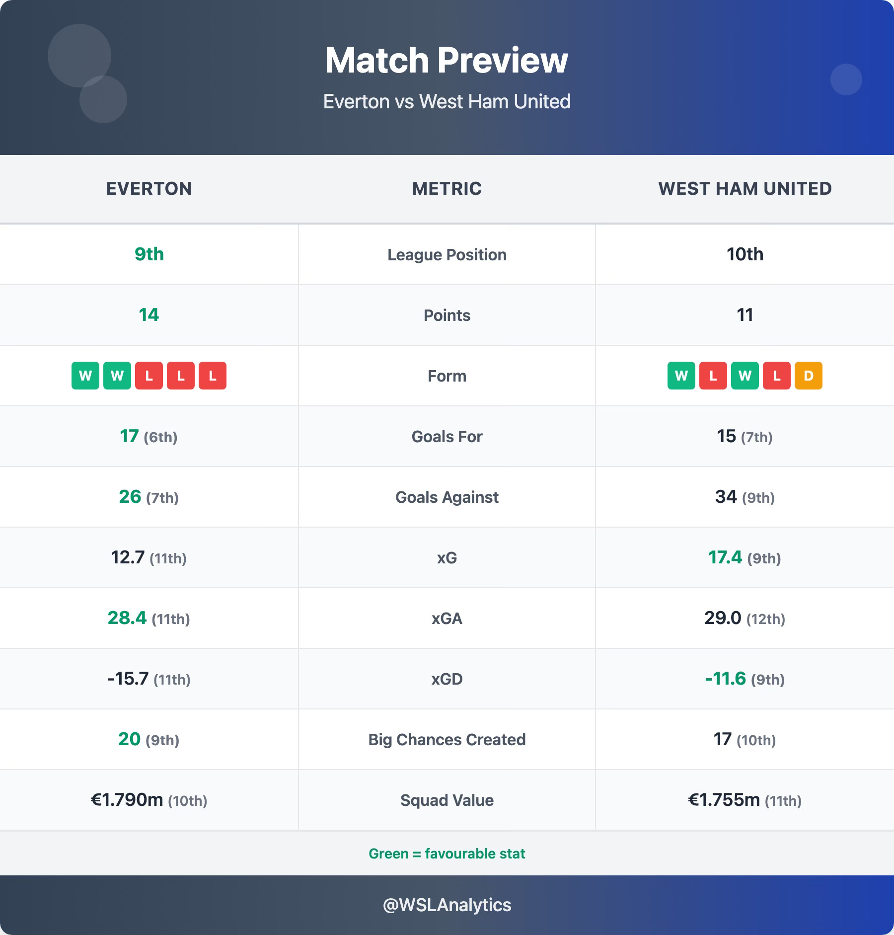 Everton v West Ham at Goodison Park is arguably the weekend’s most significant fixture in the survival fight – Everton arrive with two consecutive WSL wins and momentum under their new manager, while West Ham carry the confidence of that extraordinary comeback.