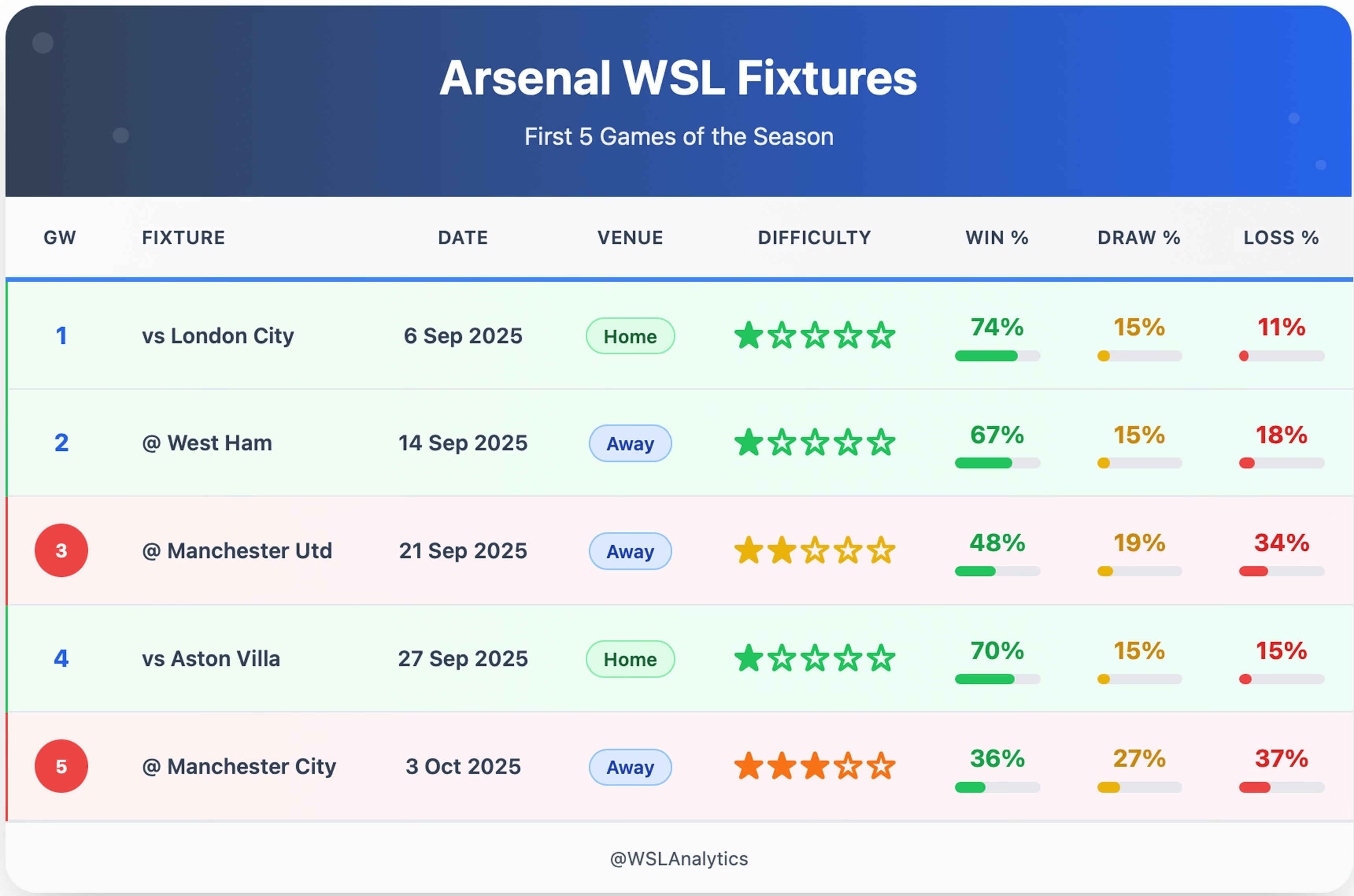 Arsenal's 2025–26 Women's Super League campaign begins with a blend of opportunity and adversity. As last season's runners-up (48 points), the Gunners are eager to close the gap on champions Chelsea. Their opening five fixtures (three against perceived weaker sides, two against fellow top-four contenders) present a chance to build momentum – but also stern early examinations of title credentials.