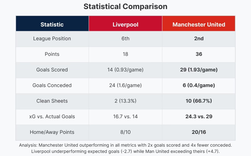 Recent meetings have favoured United, who won the reverse fixture 4-0 in December. However, Liverpool's last home victory in this fixture (1-0 in May 2024) shows they can compete when backed by home support.