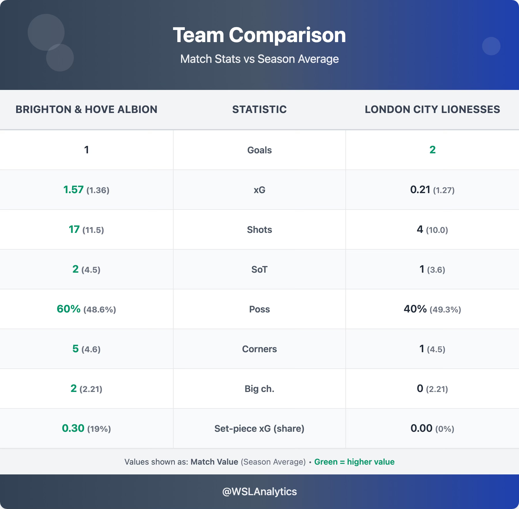 If you found this recap insightful, please consider subscribing and sharing, and join the conversation on X (Twitter) @WSLAnalytics for more WSL analysis throughout the season.