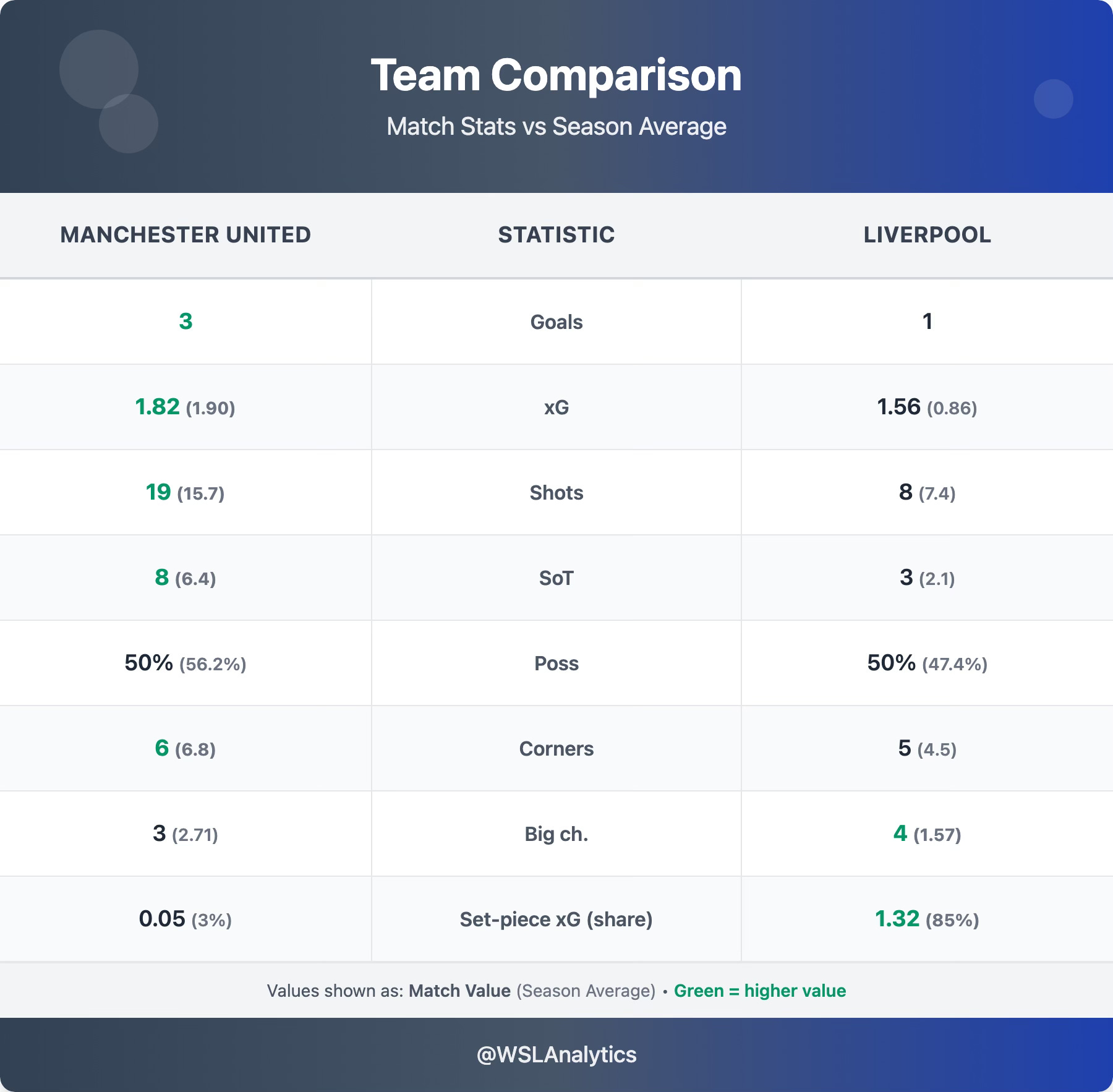 United’s win pushed them into second and sustained their run of momentum; Liverpool’s loss reinforced the season-long problem that the preview put front and centre – they simply do not generate enough threat to survive error-free for 90 minutes.
