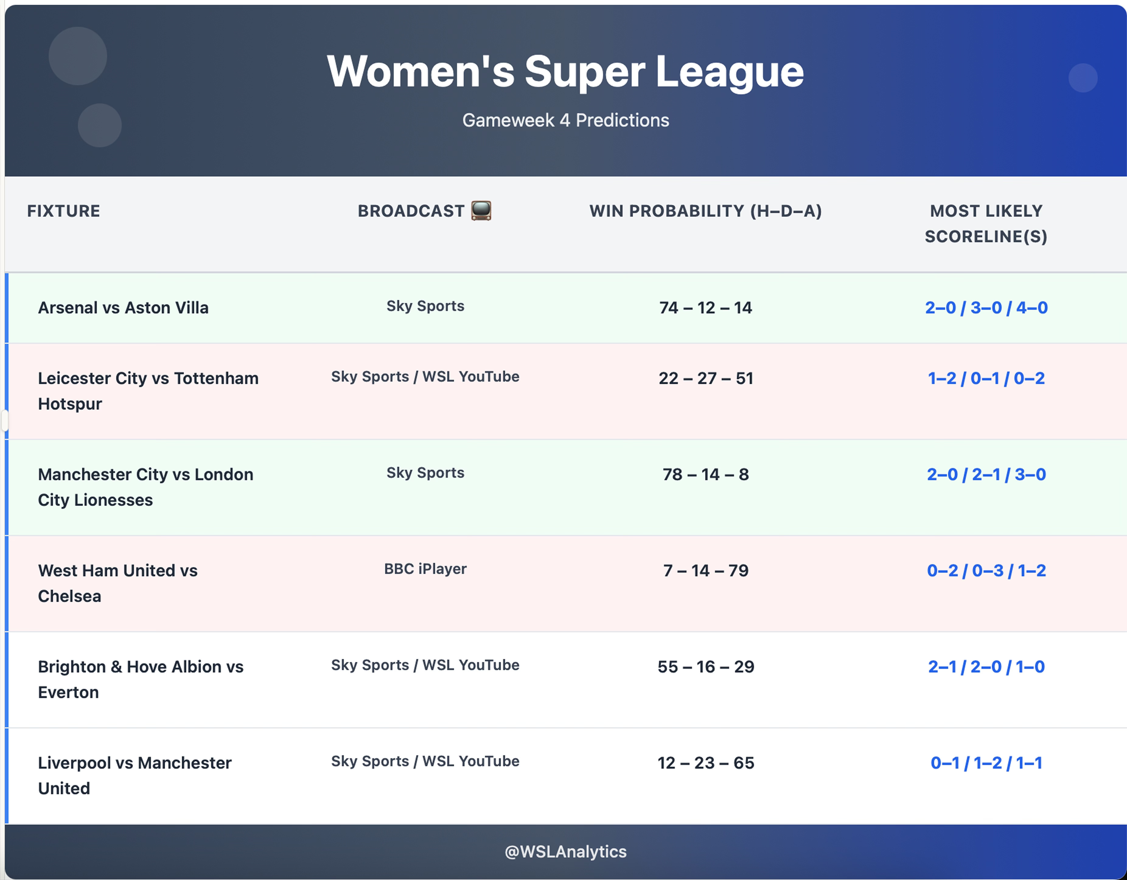 WSL 2025–26 Gameweek 4: Preview & Predictions