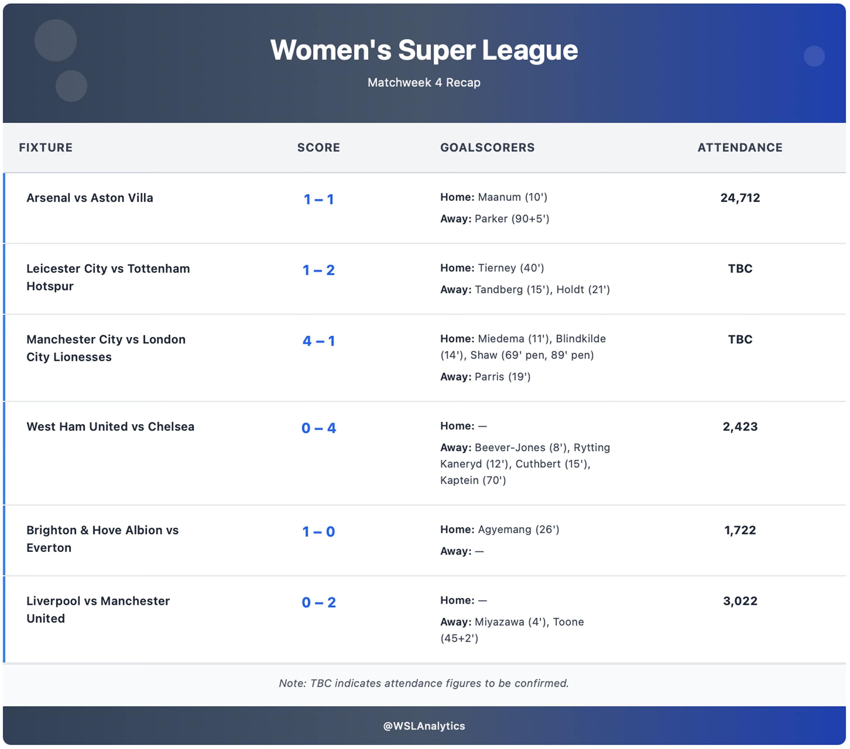 WSL 2025–26 Gameweek 4 Recap: Chelsea and City Ruthless as Arsenal Stumble Late