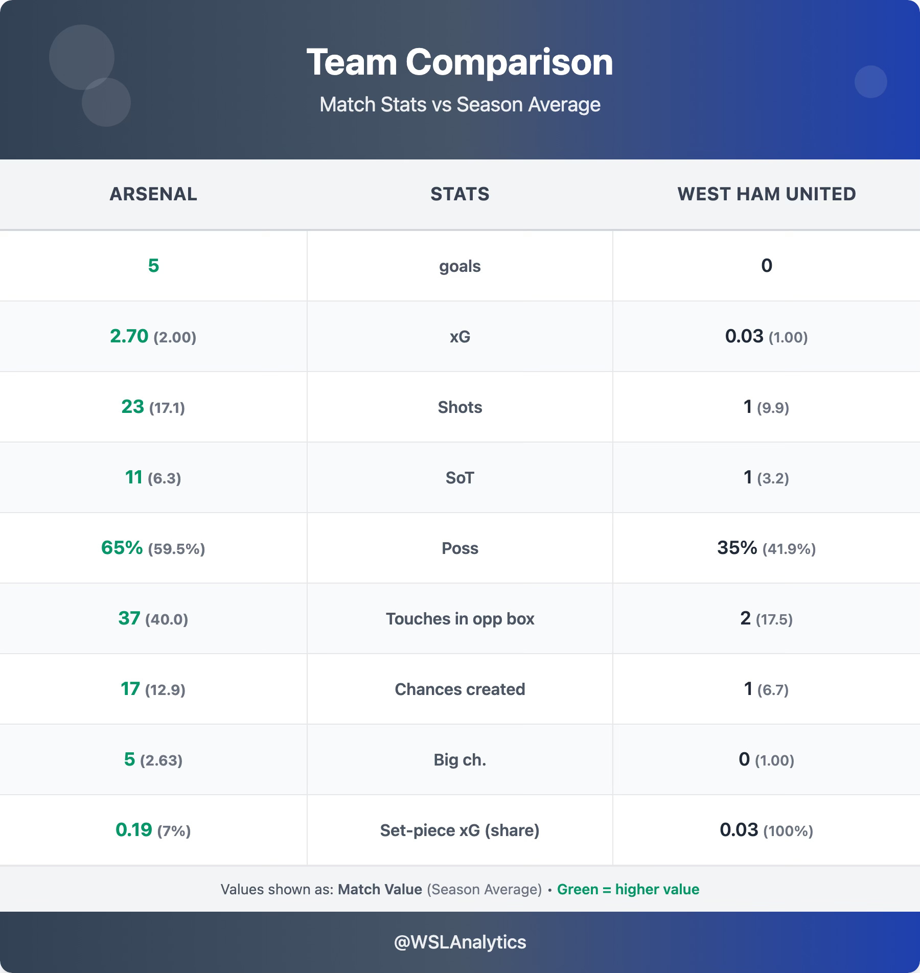 Arsenal 5–0 West Ham United