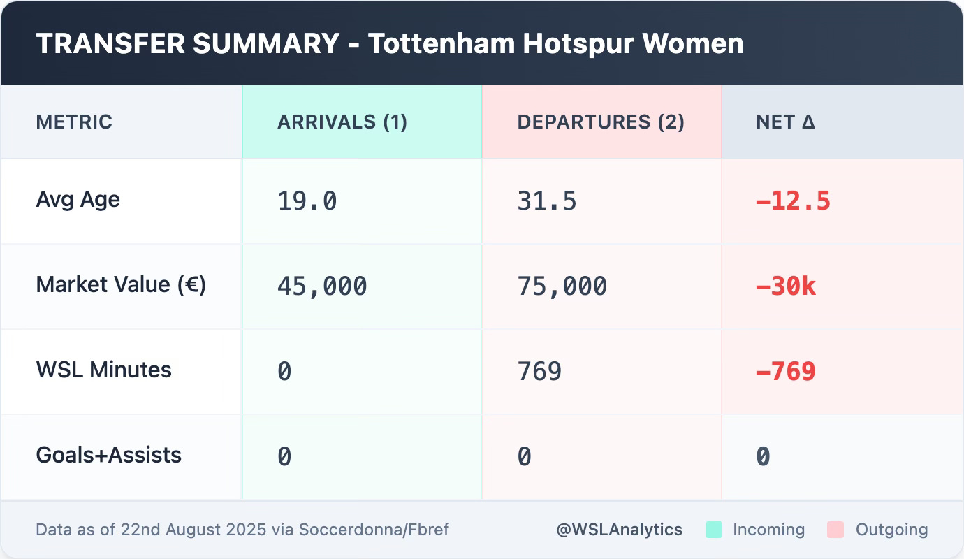⚪ Tottenham Hotspur Women — Departures (2025/26)