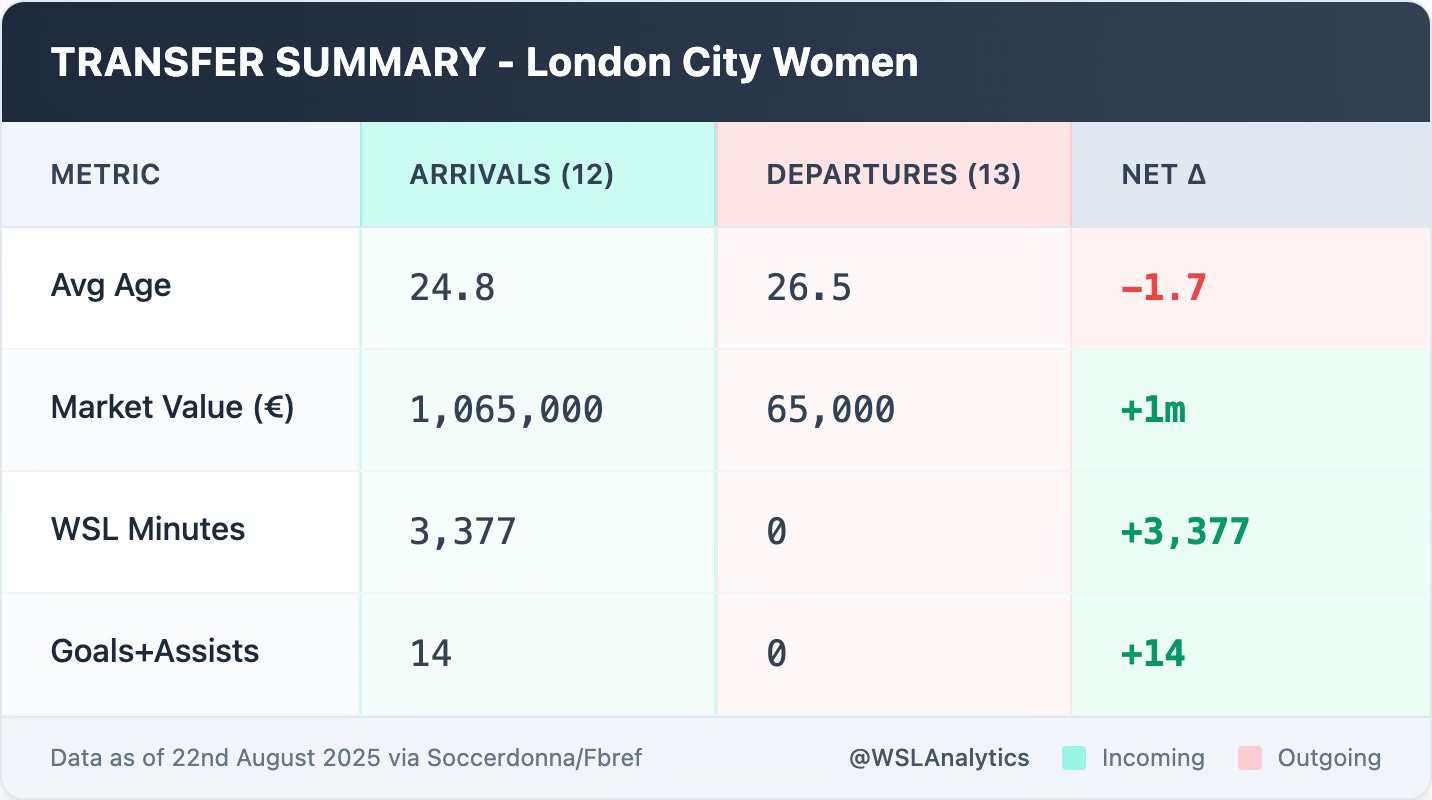 If you’ve found this breakdown valuable, please consider subscribing and sharing it — and join the conversation on X (@WSLAnalytics) as we continue tracking how these moves shape the 2025/26 WSL season.