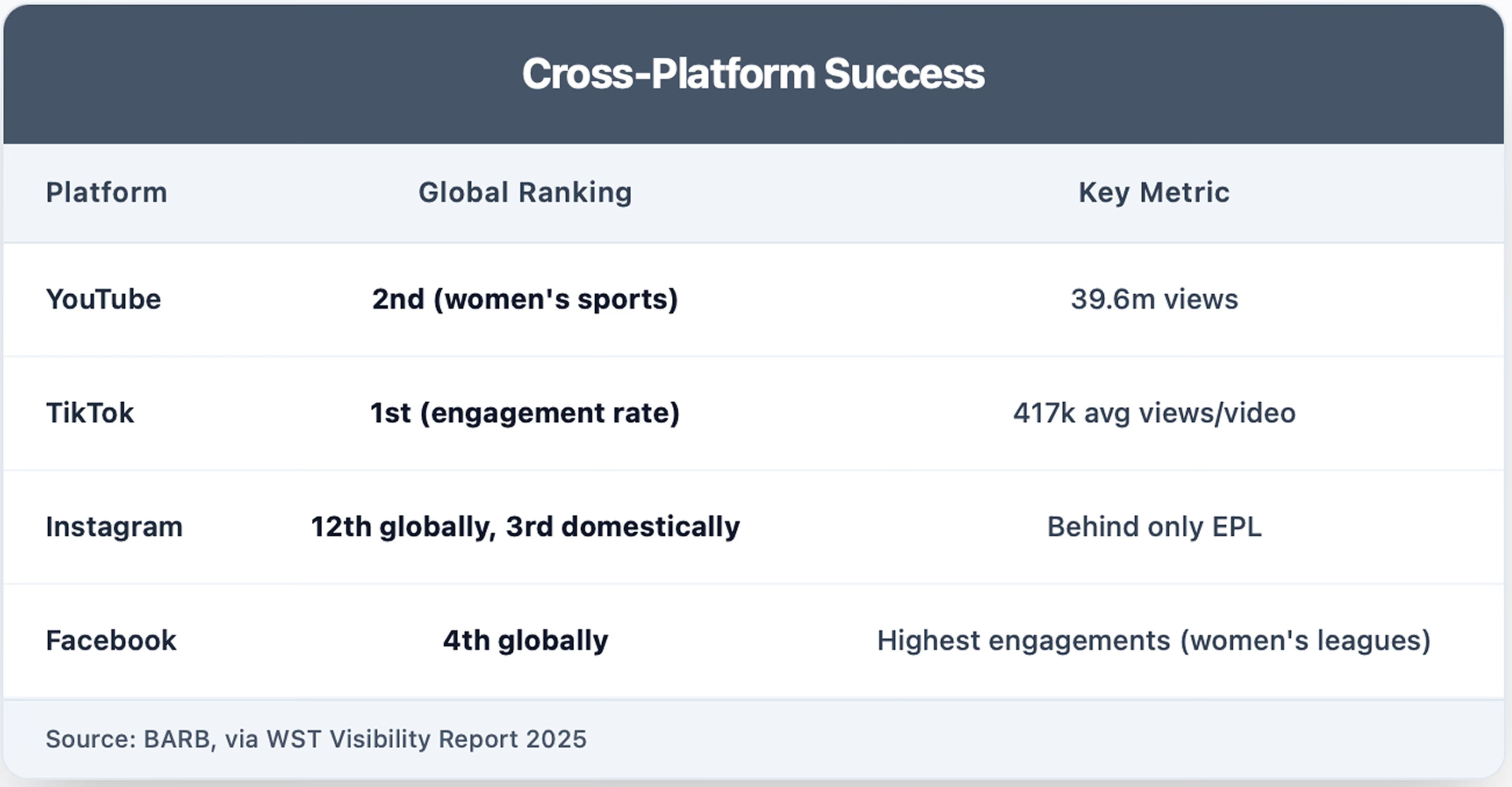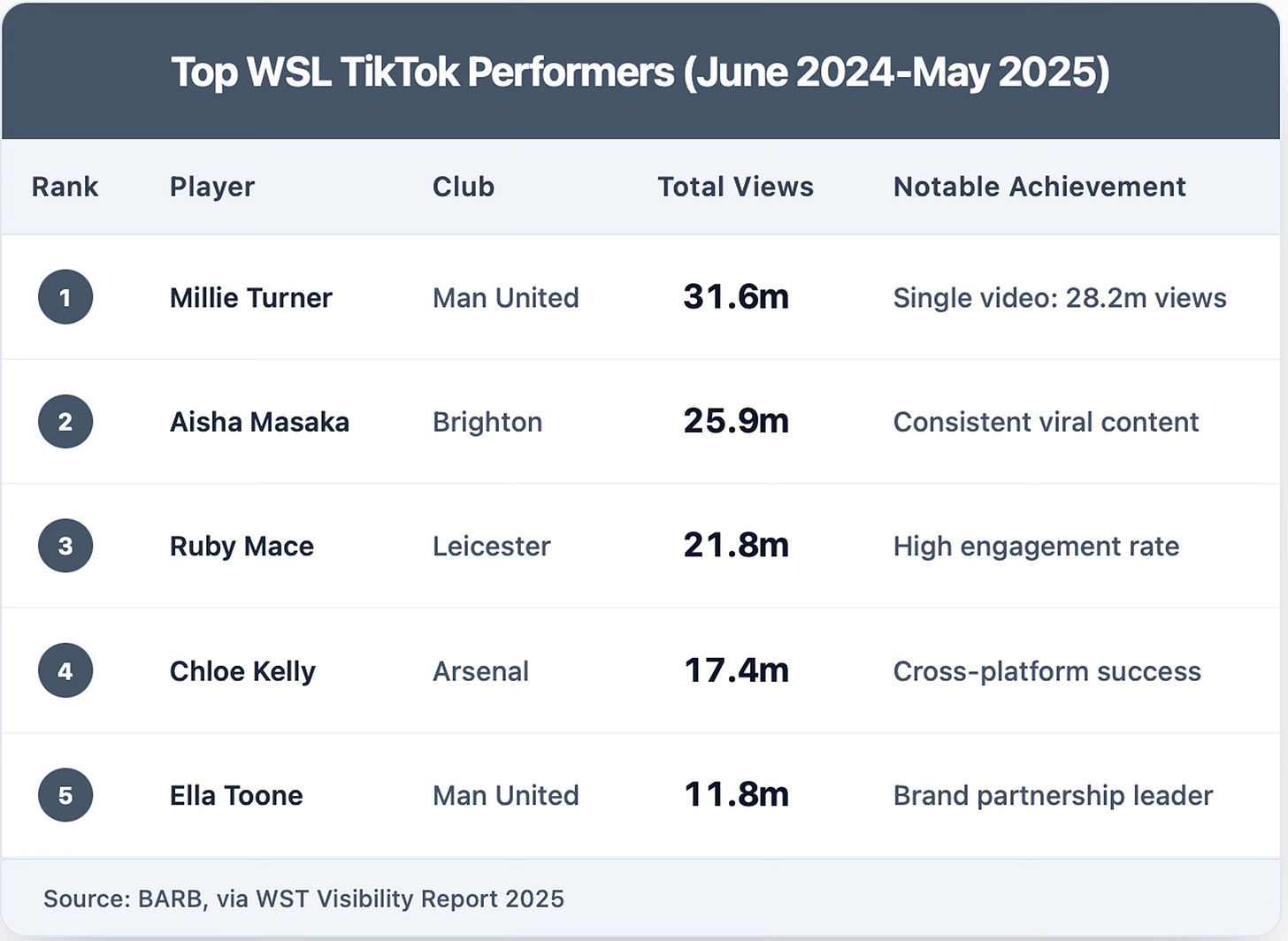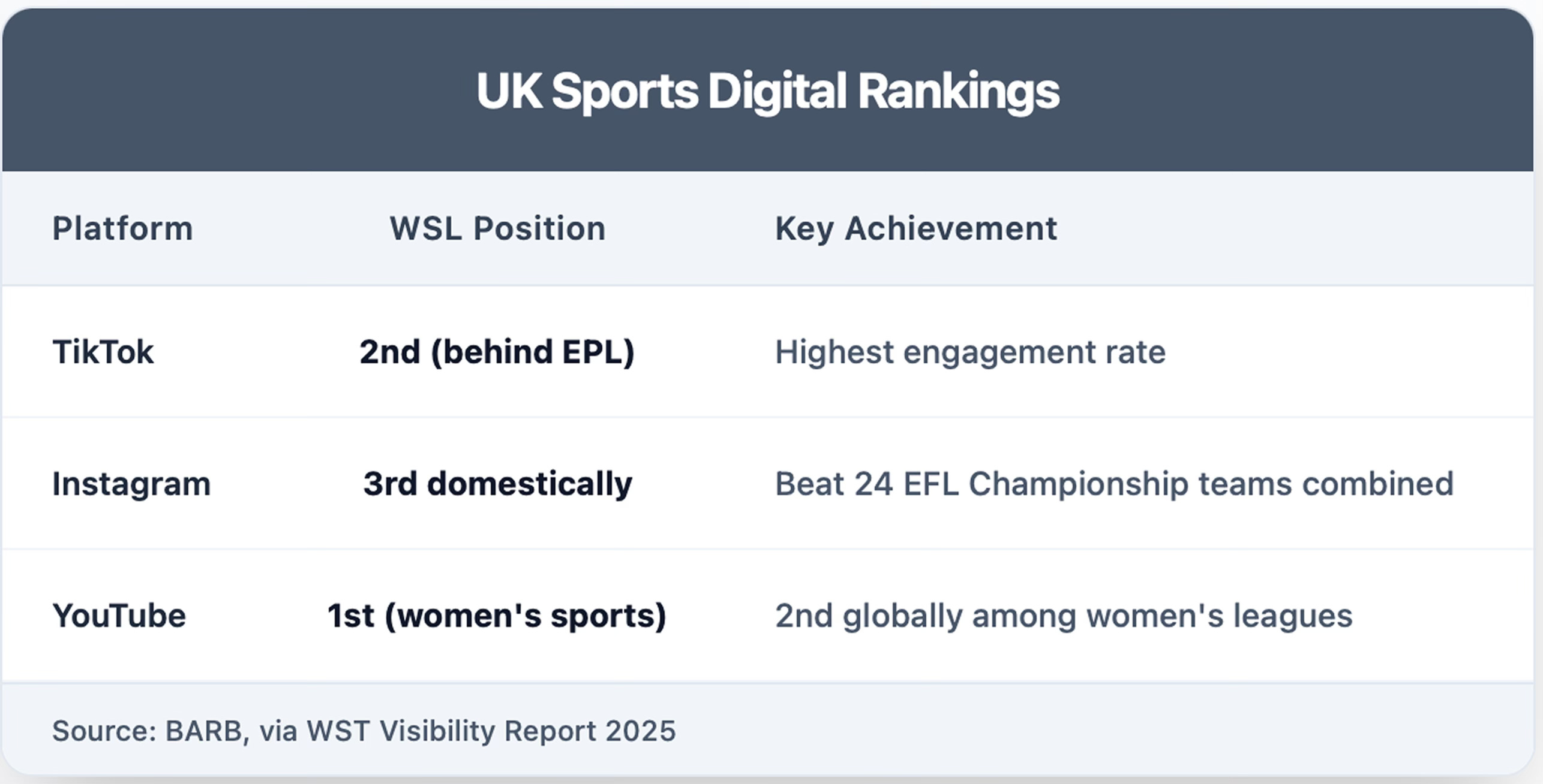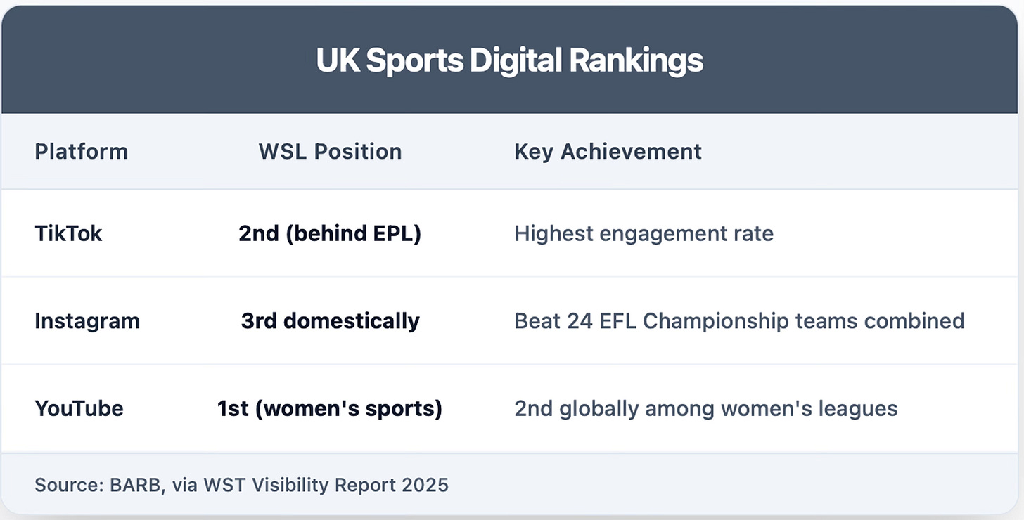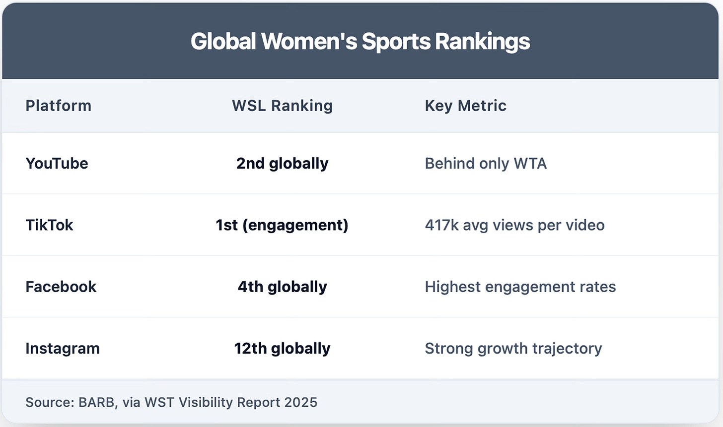 The WSL's performance becomes even more impressive when considering it competes against established global leagues with longer digital histories and larger domestic populations.